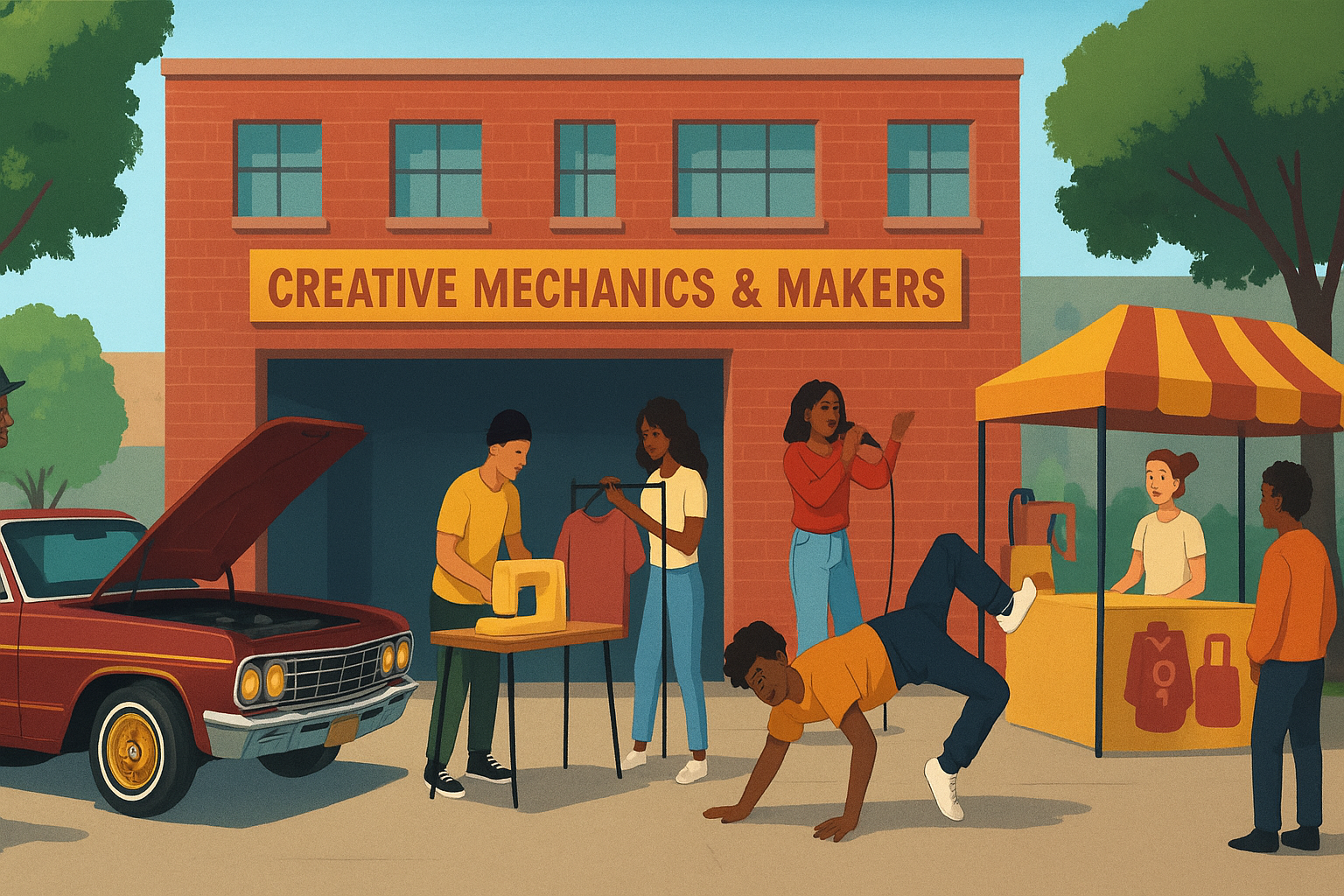 Creative Mechanics & Makers (CMM) is a Social Benefit Corporation using auto, fashion, and media arts to teach real-world skills. Every purchase helps us reach our $20K goal by April 2026 to launch our first youth summer program and secure a year-round community space.